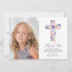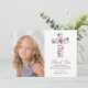 This one photo First Holy Communion thank you card features a Purple floral watercolor cross with purple, coral and greenery leaves and foliage. Perfect for any religious event: First Communion, Baptism, Christening or Confirmation.