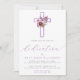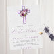 Purple Floral Cross Modern Script Baby Dedication Invitation