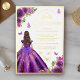 Purple Floral Dress Butterfly Quinceanera Gold Foil Invitation