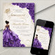 Plain white envelopes are included with paper invitations and will come to fit the invitation size you select. If you don’t need the envelopes, you may choose to not receive them by selecting the dropdown below "Envelopes" and choosing "None." If you’d like to have a design on your envelopes, you can browse all of these available envelopes to find the design that complements your Purple Floral Dress Quinceanera Invitation.
