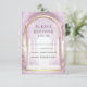 Amaze your guests with this lovely fairy tale theme wedding RSVP card featuring a beautiful castle and majestic arches with modern typography.