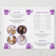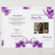 Elegant purple floral funeral program template with a serene design, perfect for memorial services, celebration of life events, and honoring loved ones. Fully customizable and print-ready.
