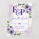 Purple White Floral Gold Frame Wedding Save the Date .