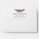 Expectations met; I liked that I had the opportunity to include our address on the back of the envelope. This color matched very well with my save the date. The color was the same as shown above. I had our address labeled on the back of the envelope and the font/printing met my expectations.
