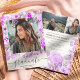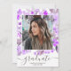 Purple floral greenery script 3 photos graduation invitation