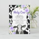 Purple Floral Holy Cow I'm One Girl First Birthday Invitation