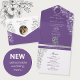 Celebrate your day with this elegant purple floral all-in-one wedding invitation featuring your photo, a matching detachable menu card, and an eco-friendly envelope-style design.
