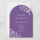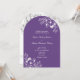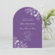 This elegant arched wedding invitation features a modern purple background paired with delicate white floral line art and a classic serif script. The design includes a full photo-free layout on the front with your ceremony details, plus a matching back with a QR code for RSVP and a wedding website link for easy guest access.