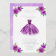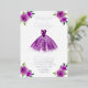 Elegant hot purple gown, floral 15th birthday party invitations.