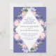 Save the Date purple pink watercolor floral wedding invitation, diamond shaped. Customize names, dates, and information.