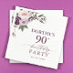 Celebrate a beautiful milestone with these elegant purple floral script 90th birthday napkins. Featuring a graceful calligraphy font and delicate watercolor flowers, these napkins add a soft, sophisticated touch to your birthday table décor. Perfect for milestone celebrations, brunches, or tea parties with a refined floral theme.