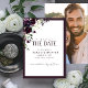 Create the perfect wedding Save the Date card with this pretty, modern design featuring a watercolor plum purple floral motif, and hand lettered script typography. The back of the card features your favorite engagement photo. Contact designer for matching products. Copyright Elegant Invites, all rights reserved.
