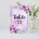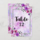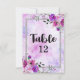 Purple Floral & Faux Silver Glitter Frame & Confetti Watercolor Floral Wedding table number cards With trendy brush script font! ~ Check my shop to see the entire wedding suite for this design!