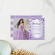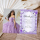 Purple Floral Sparkle Quinceanera Photo Thank You Card