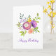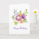 Send her a beautiful birthday card that she'll treasure. Purple, white and yellow summer flowers nestle in soft green leaves. Happy Birthday is written below the flowers and on the inside. Both can be customized separately to make your birthday wishes unique.