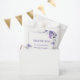Design features purple watercolor flowers at the bottom and white background. Easy personalization process start with clicking button 'PERSONALIZE' that gives you the sticker automatically for your purpose.
