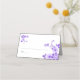 Elegant ultra violet floral wedding place card personalized with bride and groom's names on back