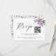 Elegant floral wedding RSVP card featuring watercolor illustration of purple peony flowers with greenery. There is also a QR code. Perfect for a spring or summer wedding.