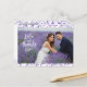 A beautiful mix of vintage flourishes with modern watercolor and hand-lettered typography in ultra violet purple, lavender and white on the front and back accent two of your wedding photos on this Thank You postcard. The back has your personal thank-you message (delete the sample text to leave the area blank for handwritten messages). All text is editable with the exception of the LOVE AND THANKS and MR & MRS titles. The font style, size, color and placement can be changed to accommodate your needs by clicking on the "click to customize further" tab.
