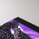 A colorful purple flowered design featuring the black silhouette of a giraffes head and neck.