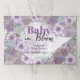 This is a charming and customizable Baby Shower paper placemat that perfectly blends elegance and whimsy. The design is adorned with an intricate pattern of hand-drawn flowers, blossoming in various shades of purple, lavender, and green. This creates a lush, garden-like atmosphere that is both soothing and joyful.