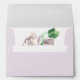 Expectations met; I liked that I had the opportunity to include our address on the back of the envelope. This color matched very well with my save the date. The color was the same as shown above. I had our address labeled on the back of the envelope and the font/printing met my expectations.