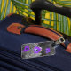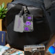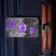 Highlighted, beautiful purple flowers on a grey background. Reverse is grey with purple writing for your ID infor, or you can leave it blank. You can also change the colors of the background and writing.