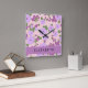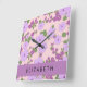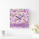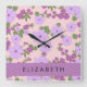 Purple Flowers, Pattern Of Flowers, Your Name Square Wall Clock