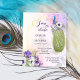 Purple flowers peacock budget save the date template, with QR RSVP at the back.