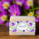 This soap band features purple flowers and green leaves in the background with space for your ingredients, business name, and website.