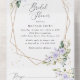 Invite friends and family in style and set the tone for your special day with this charming bridal shower invitation. Design features purple and white watercolor flowers, greenery, gold confetti and gold frame on white background.