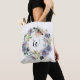 Gift this beautiful personalized tote bag featuring a purple and lavender garden flowers wreath personalized with a monogram in chic lettering. MATCHING ITEMS in our store.
