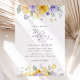 Invite friends and family in style and set the tone for your special day with this charming wedding invitation. Design features purple and yellow watercolor flowers and greenery on white background.