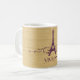 Elegant and chic French Flourish Mug featuring a faux woodgrain look background and an Eiffel Tower design in purple adorned with cascades of stylish swirls. This girly and trendy design is easy to customize with the personalized text of your choosing. Click "Customize It" to find more personalization options.