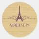 Elegant and chic French Flourish Stickers featuring a faux woodgrain look background and an Eiffel Tower design in purple adorned with cascades of stylish swirls. This girly and trendy design is easy to customize with the personalized text of your choosing. Click "Customize It" to find more personalization options.