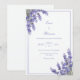 Welcome your guests with the tranquil charm of a blooming meadow. This digital botanical layout features realistic sprigs of deep purple French lavender gracefully adorning the top and bottom corners. The vibrant violet blossoms and delicate green stems are set against a clean, minimal white background, creating a high-contrast and airy vibe. A crisp, navy blue double-line rectangular frame provides a modern, structured anchor for your text, lending a professional and polished feel to your stationery. This layout is perfectly suited for a romantic French Provincial wedding or a serene summer garden ceremony. The timeless purple and navy palette harmonizes beautifully with slate blue linens, sage green foliage, or natural wood accents, making it a versatile choice for a rustic barn reception, a refined outdoor bridal shower, or an elegant vineyard engagement party.