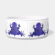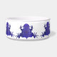Purple and white frogs design pet bowls. Personalized dog food bowl for purple frog fans.