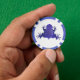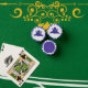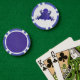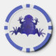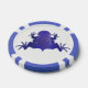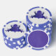 Purple and white poker chips with purple frog art on one side and purple snakeskin graphic design print on the other side.
