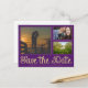 Customize this stylish Fun Modern horizontal Save the Date wedding postcard designed with beige chalk style text on purple. Replace the three template images collage with your favorite 3 photos and change all the template information on both sides with your own. This design has a wording: "We're getting married! (With your date of marriage) And would love for you to save the date to be able to share in our special day. Formal invitation to follow." you can change the words with your own. *Photo template credits: Photo 1: © by StephaniePetraPhoto; photo 2: © by Sean McGrath; photo 3: © by Tabitha Blue.