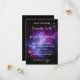 A pretty purple and blue galaxy cluster space photo with a white contemporary calligraphy save the date wedding text design. Create your own custom invitation cards for a planetarium wedding, or other cool venue. All the text areas on this paper product can be customized. There is plenty of room for more information as needed. The back is solid black, but you can copy and paste the space image onto that side.