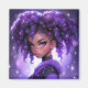 A confident girl with cosmic purple curls and starry accessories radiates a dreamy, space-inspired vibe. Her glowing violet eyes, glittery background, and bold fashion details make her a standout figure in galaxycore and afro-futurist aesthetics.