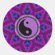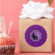 Vibrant Purple Lilac and blues with geometric flower shapes and a purple yin yang symbol