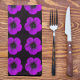 Purple Geranium Floral Pattern on Black Cloth Napkin