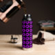 Keep your beverage hot or cold wherever you go with this trendy, vacuum Insulated water bottle that features the image of a purple Cranesbill Geranium flower on a black background and is printed in a repeating pattern. A lovely, floral design! Select your water bottle color.