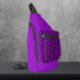 This purple crossbody sling bag with zippered pocket goes where you go when biking and hiking and features on the front, zippered pocket the image of a purple Cranesbill Geranium flower printed in a repeating pattern on a solid, black background. A fun, floral design!