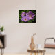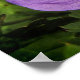 This poster features magenta purple Cranesbill Geranium flowers, each with a lovely golden yellow center, and green foliage.