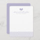 Designed to coordinate with the Lea Delaveris Design purple gingham baby shower collection, this invitation insert or baby shower activity card is perfect for guests to share advice and well wishes for the new parents and baby. The sweet purple script "advice and well wishes" text can be edited as can the gray "for the new parents" (personalize it with their names). It also features a pueple gingham pattern at the bottom and a lilac purple polka dot pattern on the back that matches the bow on the front.