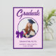 Purple Gingham Bow Photo Graduation Party Invitation