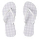 These purple gingham flip flops feature a distinctive purple and white checked pattern. The purple gingham pattern gives these flip flops a fun and playful look that can add a pop of color and personality to any outfit.