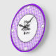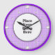 Purple Gingham Frame round photo frame behind the hour marks, Place your photo here custom wall clock, your photo will appear behind the round photo frame for a truly professional look - white gold dots for hour marks - 12,3,6 and 9 being larger dots, in a diamond shaped pattern looks great on round or square clocks